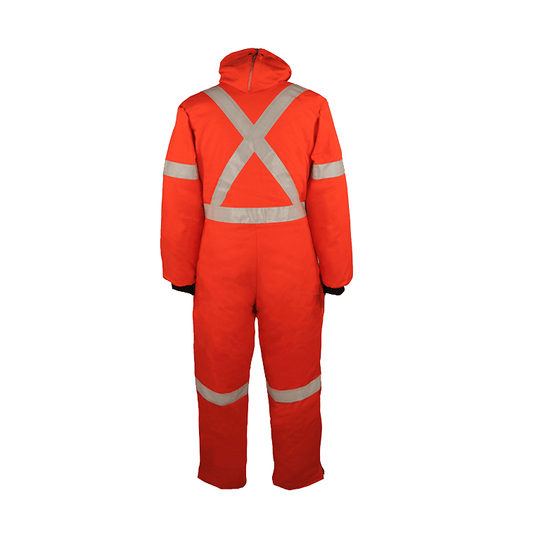 • L'emplacement des bandes réfléchissantes : 2 bandes verticales à l'avant, une bande horizontale autour de la taille et des manches, des jambes, et en "X" au dos.